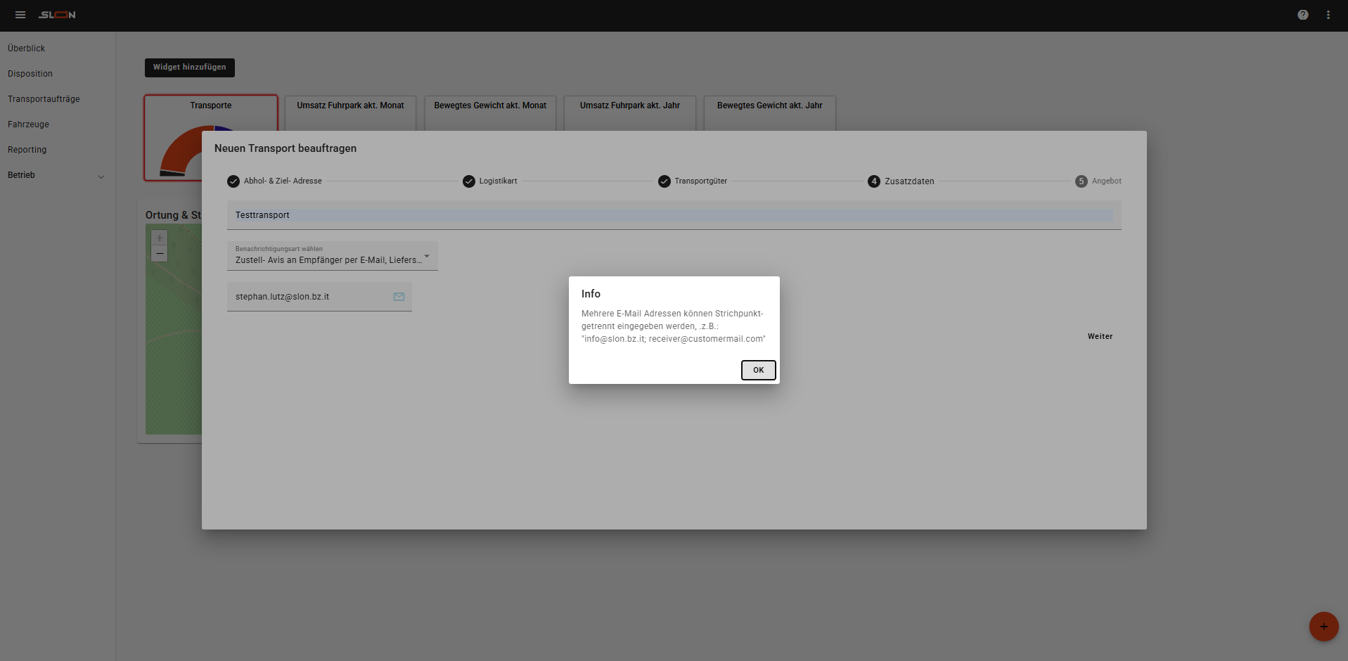 Änderungen werden sofort übernommen und sind für alle beteiligten Stellen sichtbar.Schlussansicht bei Transportänderungen